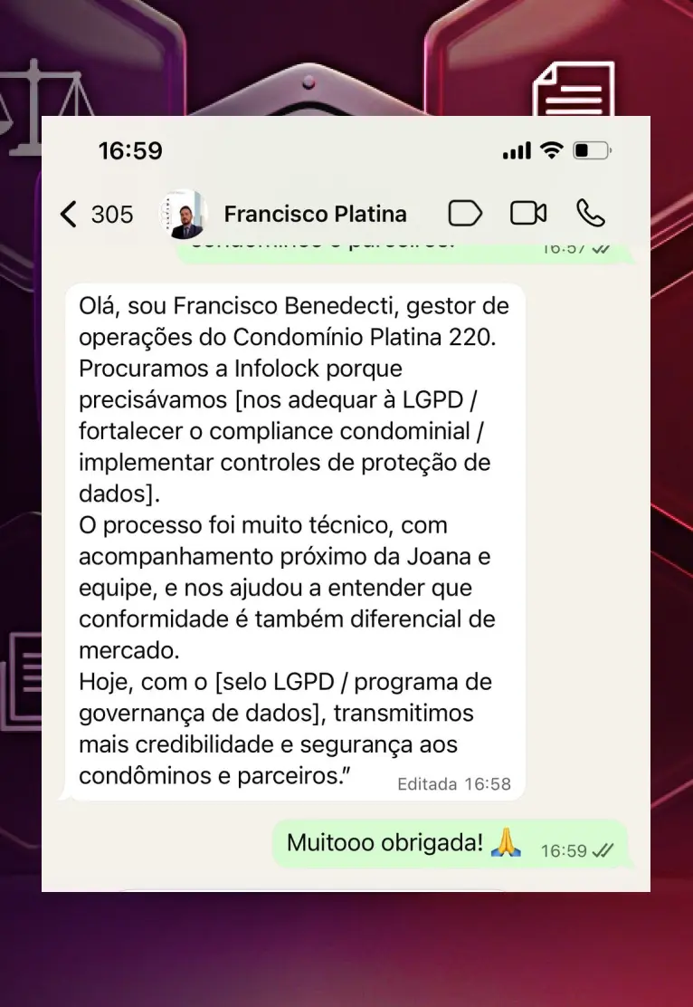 Joana criou a Infolock para transformar conformidade em vantagem comercial real.